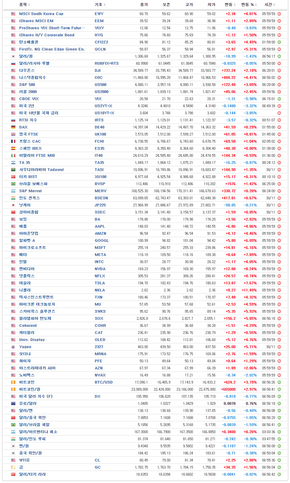 - MSCI 한국지수 ETF: $60.70 (+2.34, +4.01%)