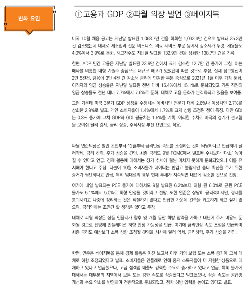 변화요인: ①고용과 GDP ②파월 의장 발언 ③베이지북