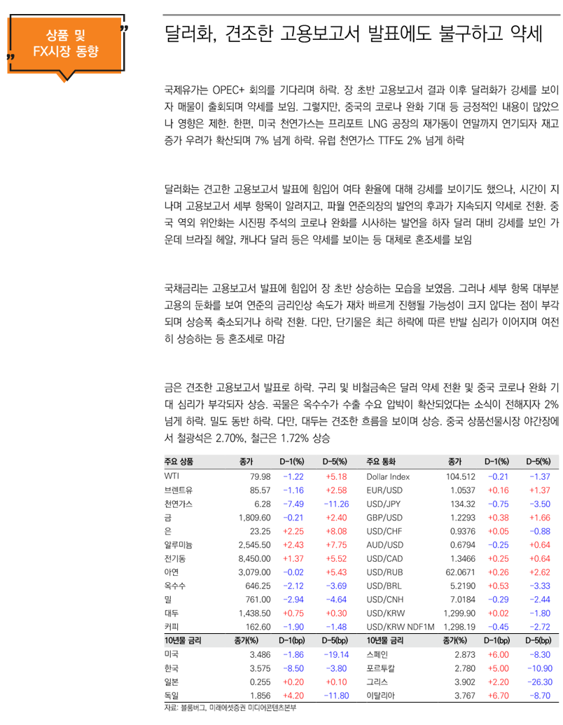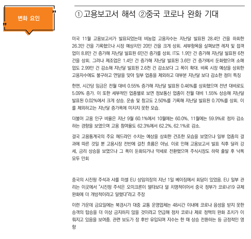 변화요인: ①고용보고서 해석 ②중국 코로나 완화 기대