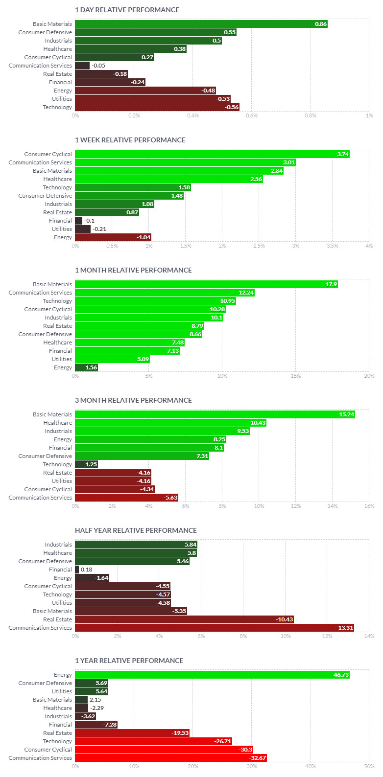 | IT | XLK | 135.4 | -0.6% | 햇빛 | 11.9% | -1.1% | -20.8% |