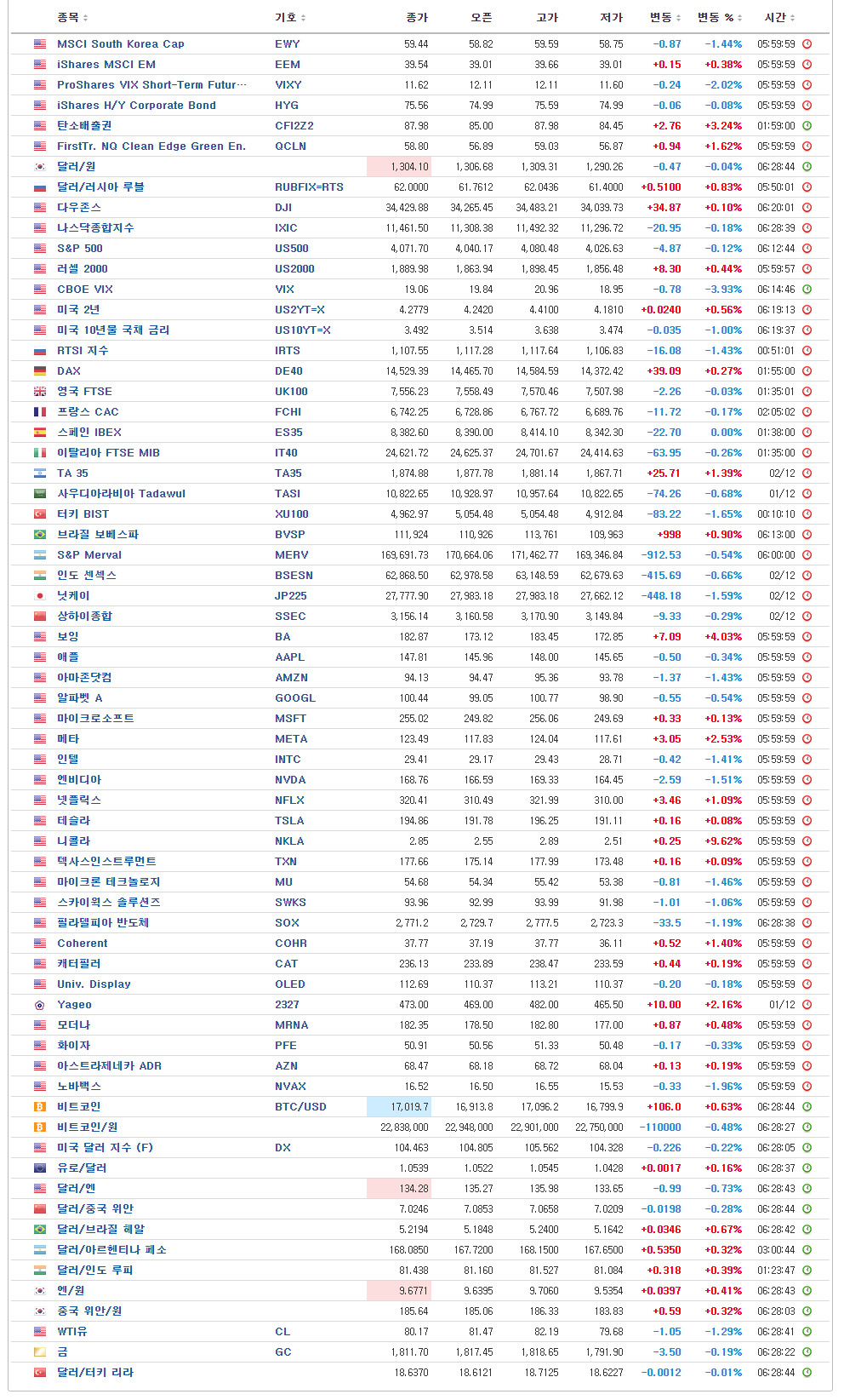 - MSCI 한국지수 ETF: $59.44 (-0.87, -1.44%)