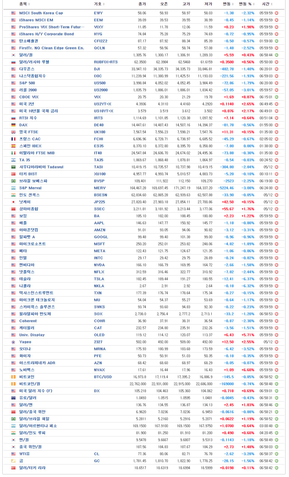 - MSCI 한국지수 ETF: $58.06 (-1.38, -2.32%)