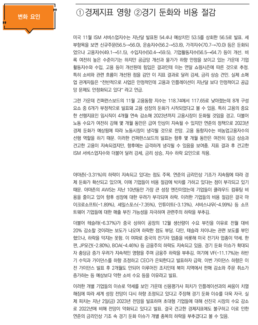 변화요인: ①경제지표 영향 ②경기 둔화와 비용 절감