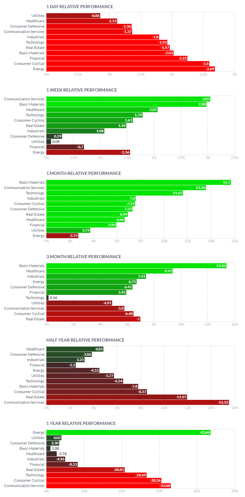 | IT | XLK | 133.1 | -1.7% | 햇빛 | 7.2% | 1.1% | -21.7% |
