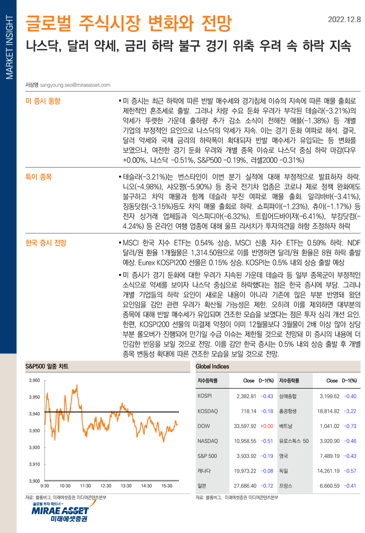 [신영증권 자산전략팀] 22.12.8 모닝 브리프