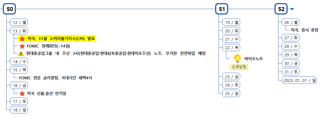 | 12월 12일(월) 증시캘린더 / 해외마감시황 (0) | 2022.12.12 |