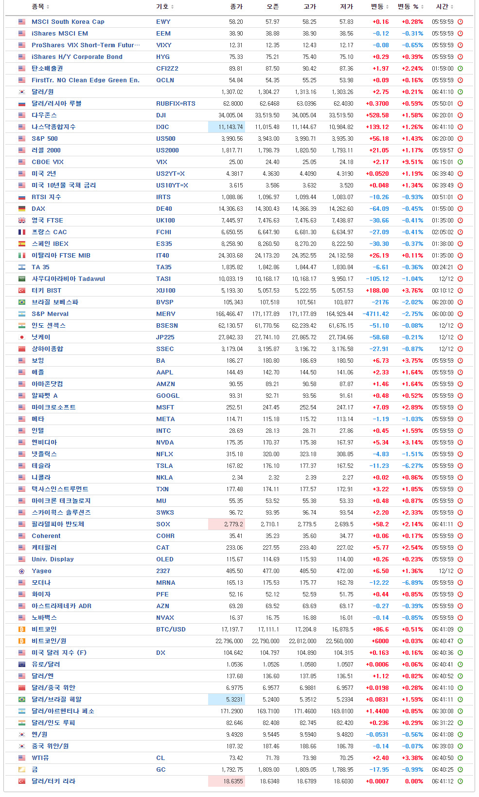 | PHLX 반도체지수 | 2,779.21 | 58.19 | 2.1% | 29/1/0 |