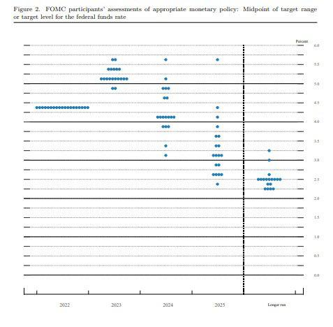 ☑️점도표상 내년에 25bps씩 4번 올리겠다는 의미이며, 반대로 2024년에는 25bps씩 4번 내리겠다는 의미
