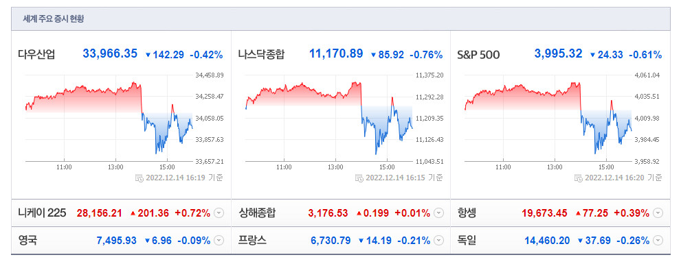 | 12월 14일(수) 증시캘린더 / 해외마감시황 (0) | 2022.12.14 |