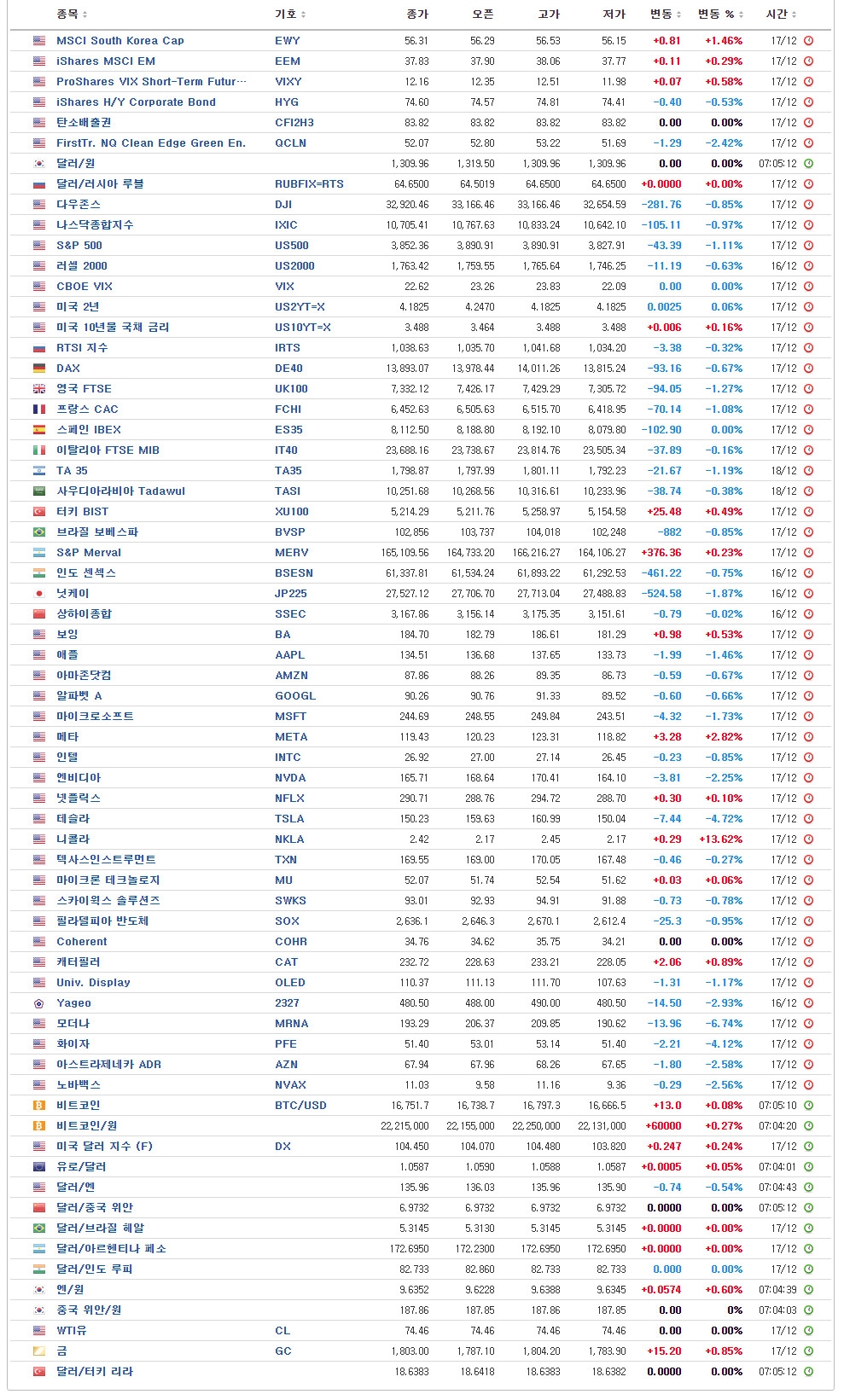 | VIX지수 | 22.62 | -0.21 | -0.9% |