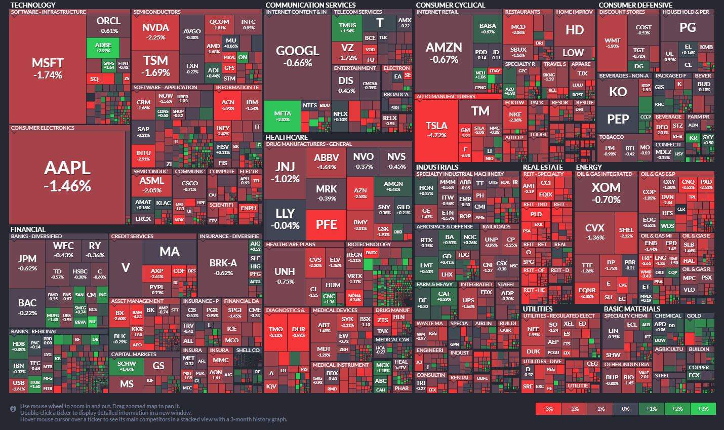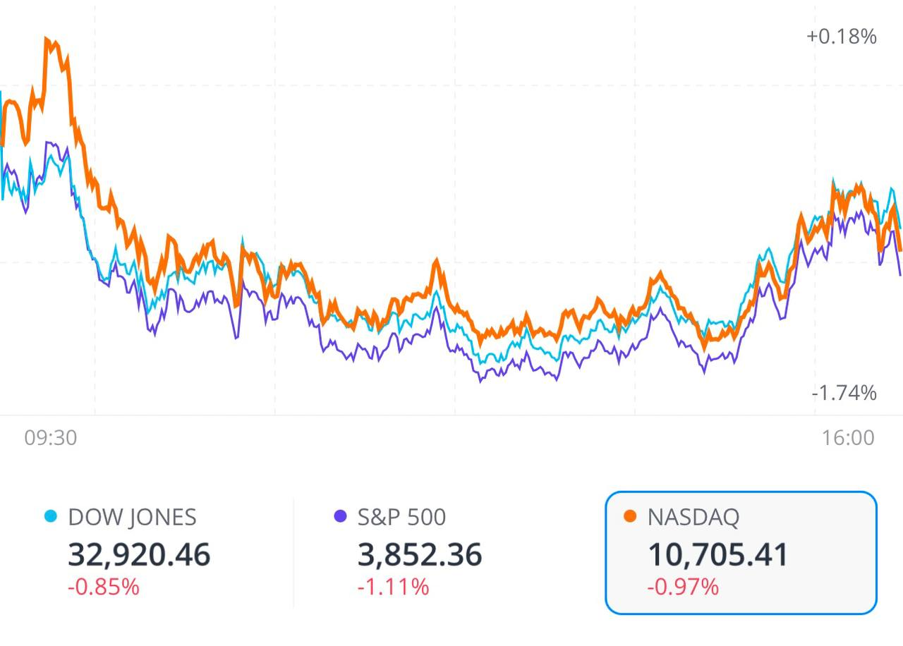 | S&P500 | 3,852.36 | -43.39 | -1.1% | 82/422/0 |