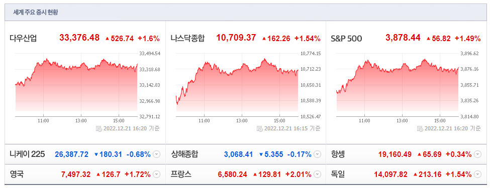 글로벌 주식시장 변화와 전망(12월 22일)