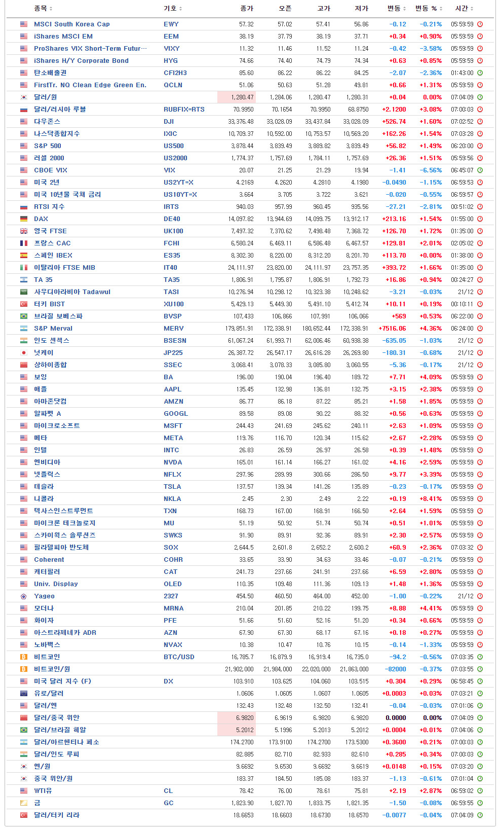 - U.S. Market Closing – 06:00 기준