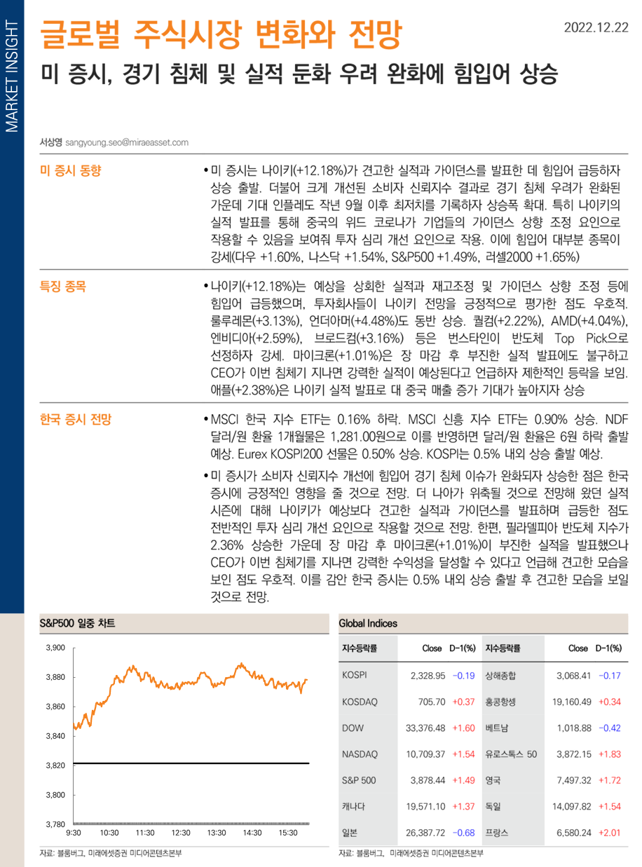 12/22 [미래에셋증권] 해외 금융시장