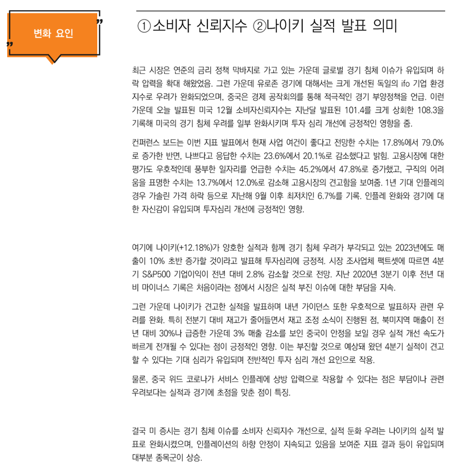 변화요인: ①소비자 신뢰지수 ②나이키 실적 발표 의미