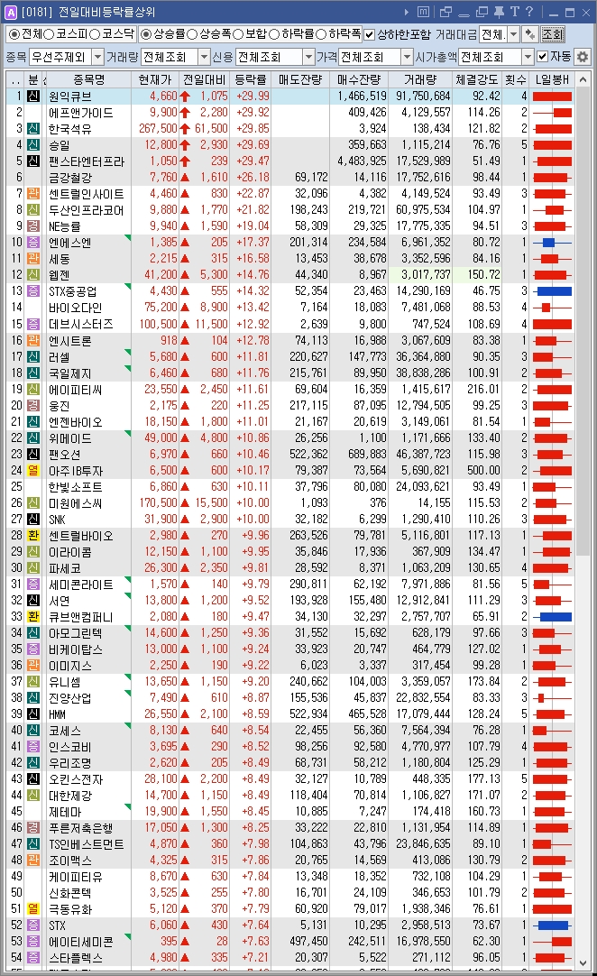 - 약세: 철강금속(-1.66%), 화학(-1.34%), 전기전자(-1.31%) 등