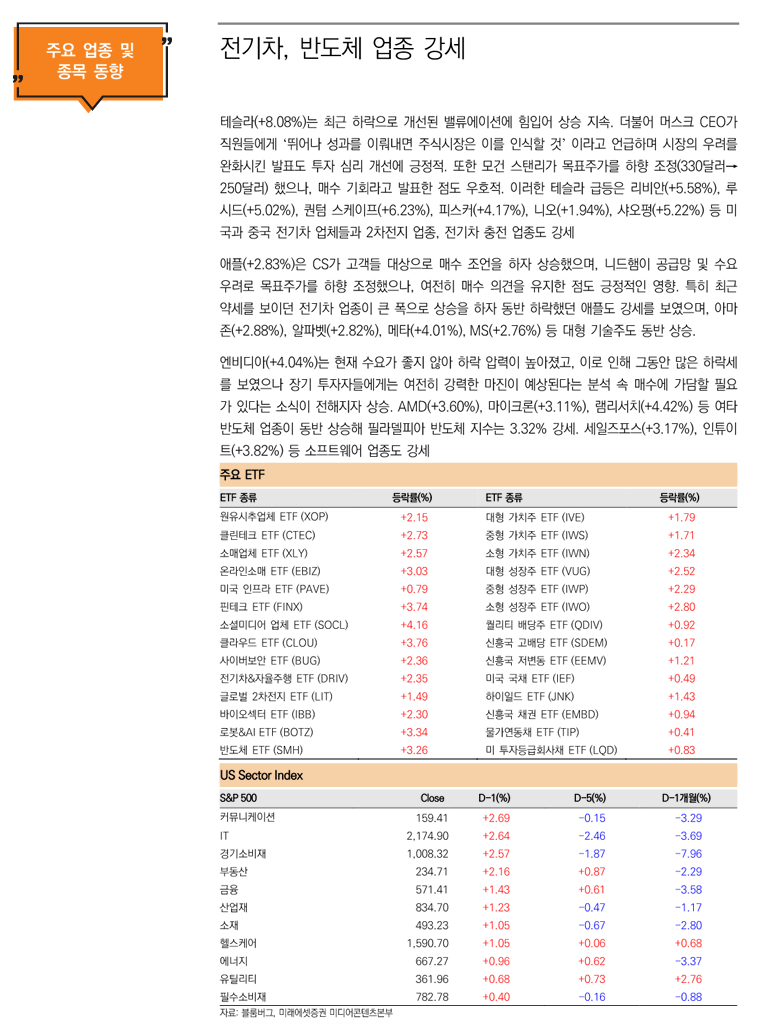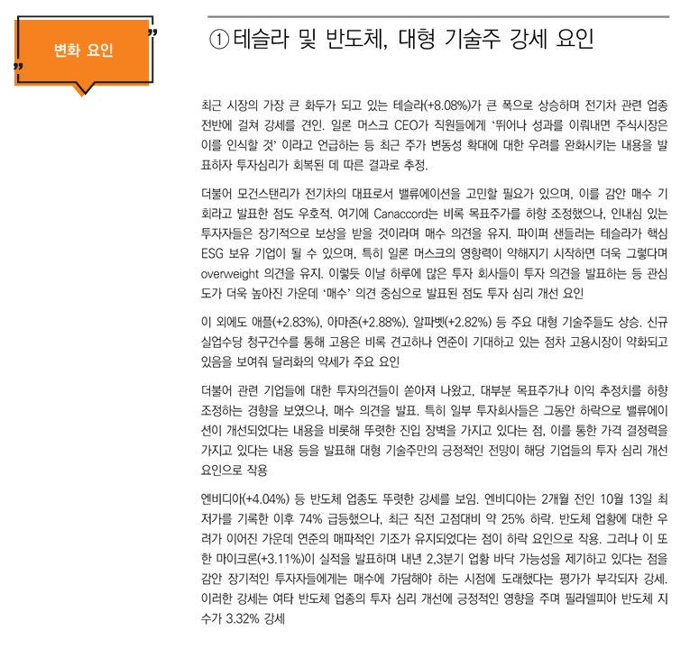 변화요인: ①테슬라 및 반도체, 대형 기술주 강세 요인