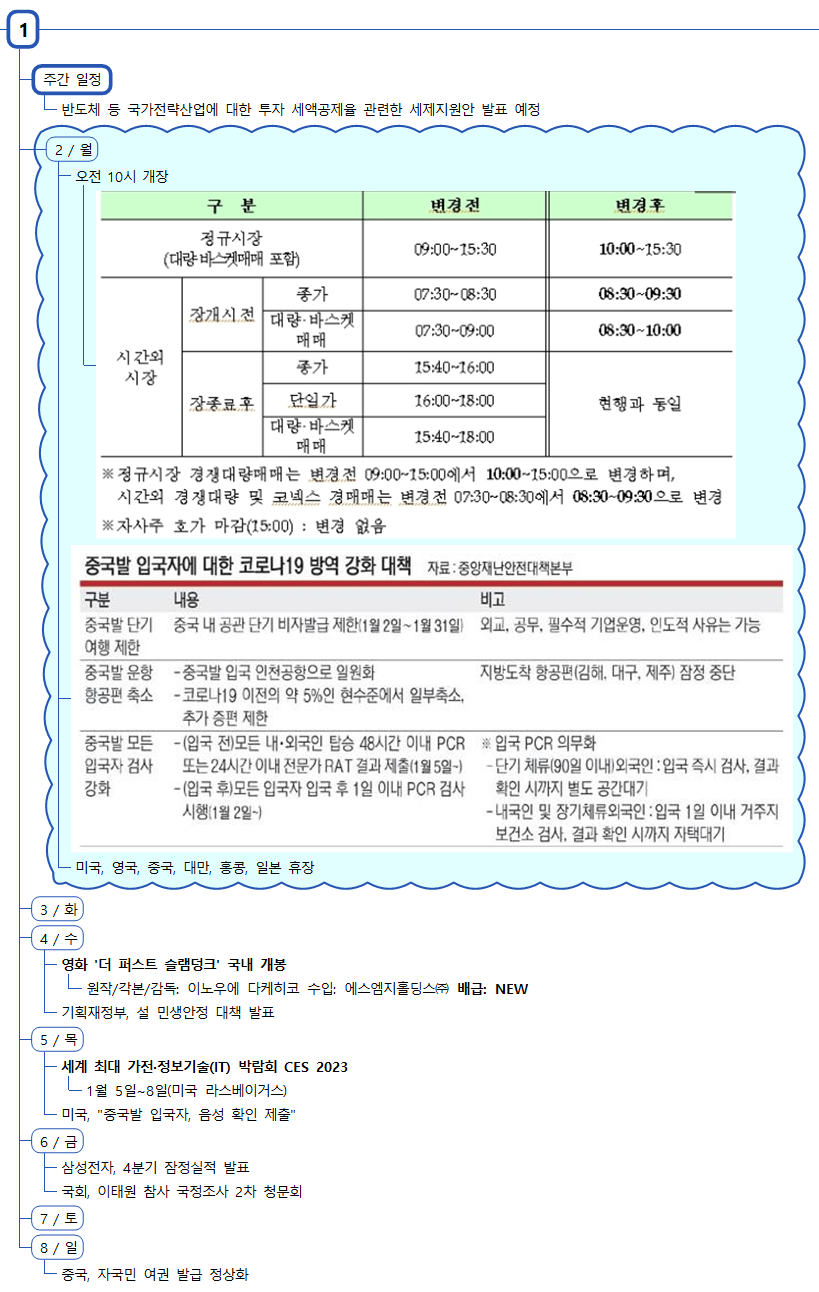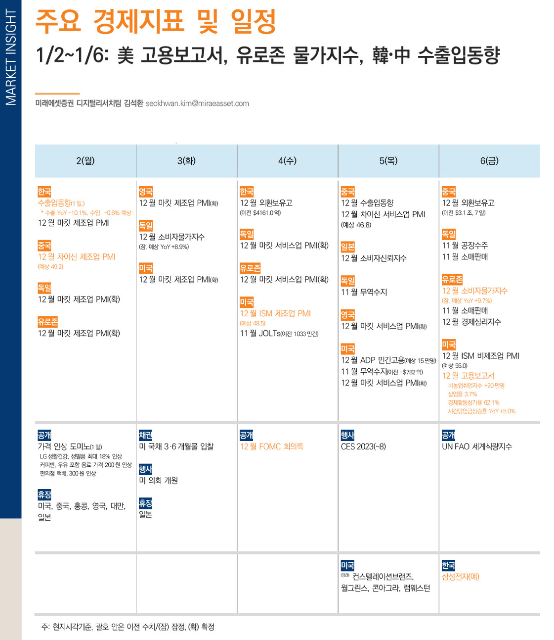 주요 경제지표 및 일정(1월 2일~1월 6일)