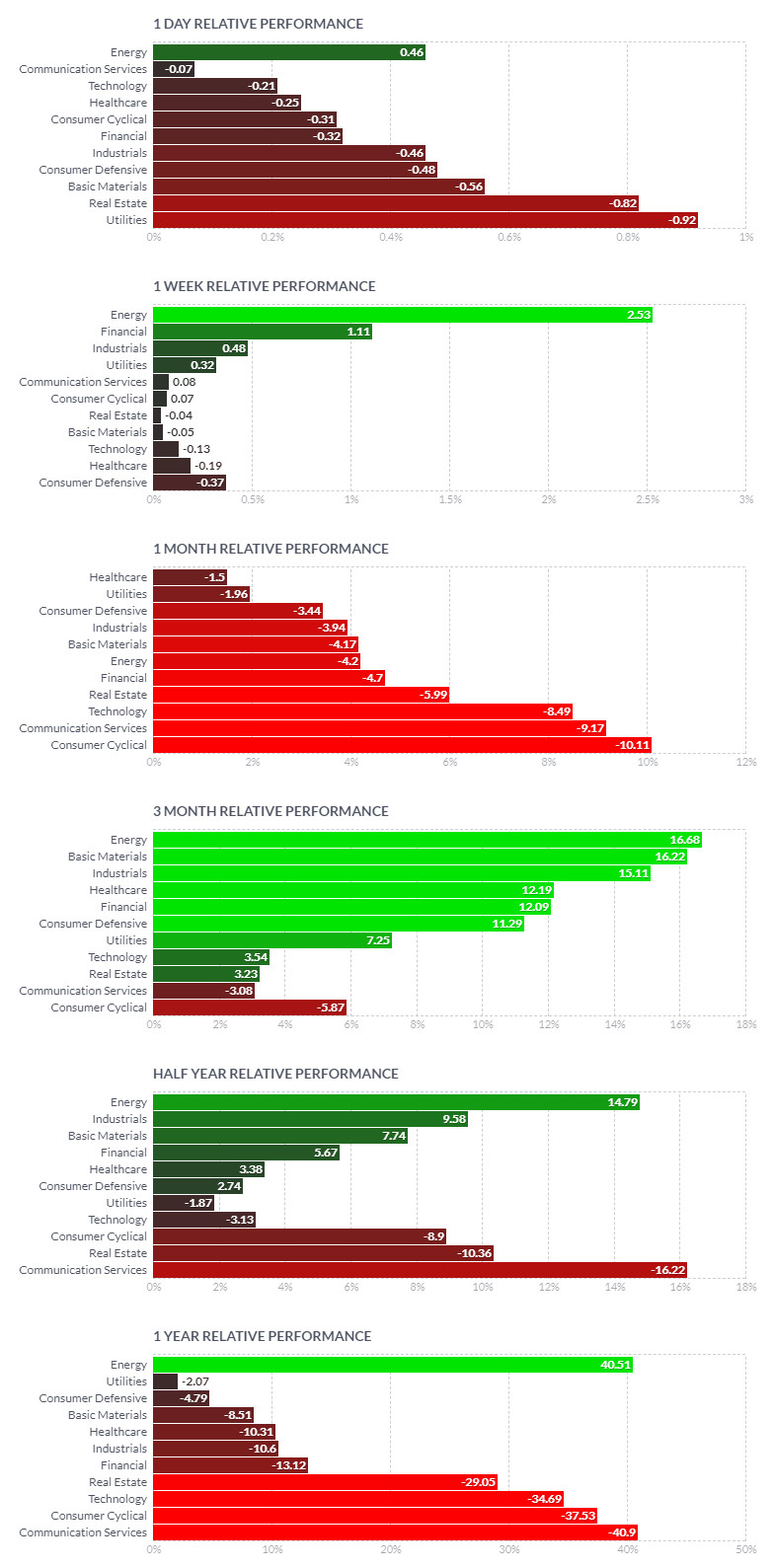 | 금융 | XLF | 34.3 | 1.42% | 안개 | -4.40% | 7.60% | -11.40% |
