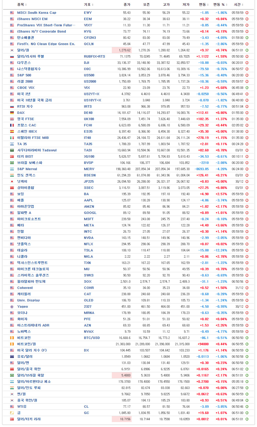 - U.S. Market Closing – 06:00 기준
