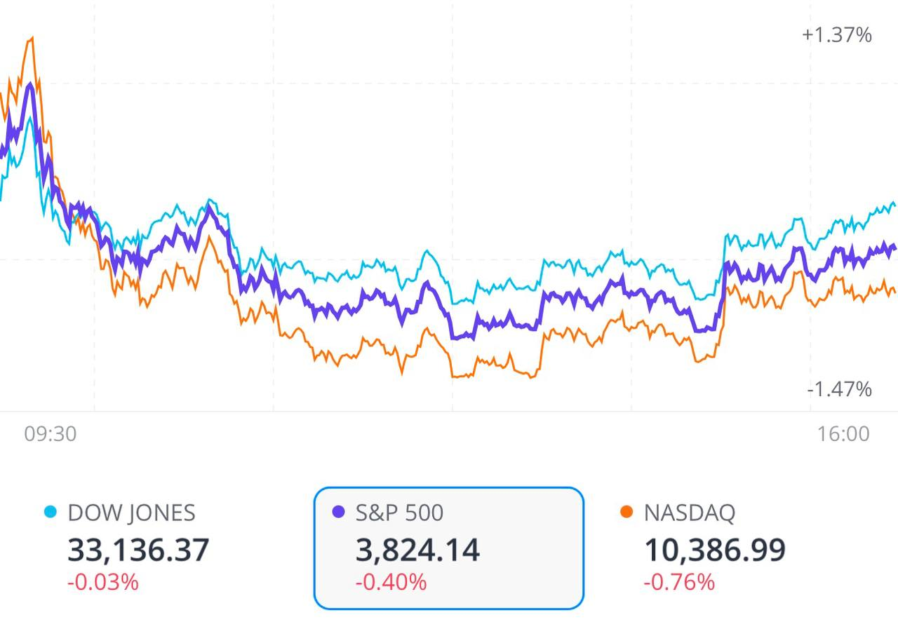 | S&P500 | 3,824.14 | -15.36 | -0.4% | 263/236/4 |