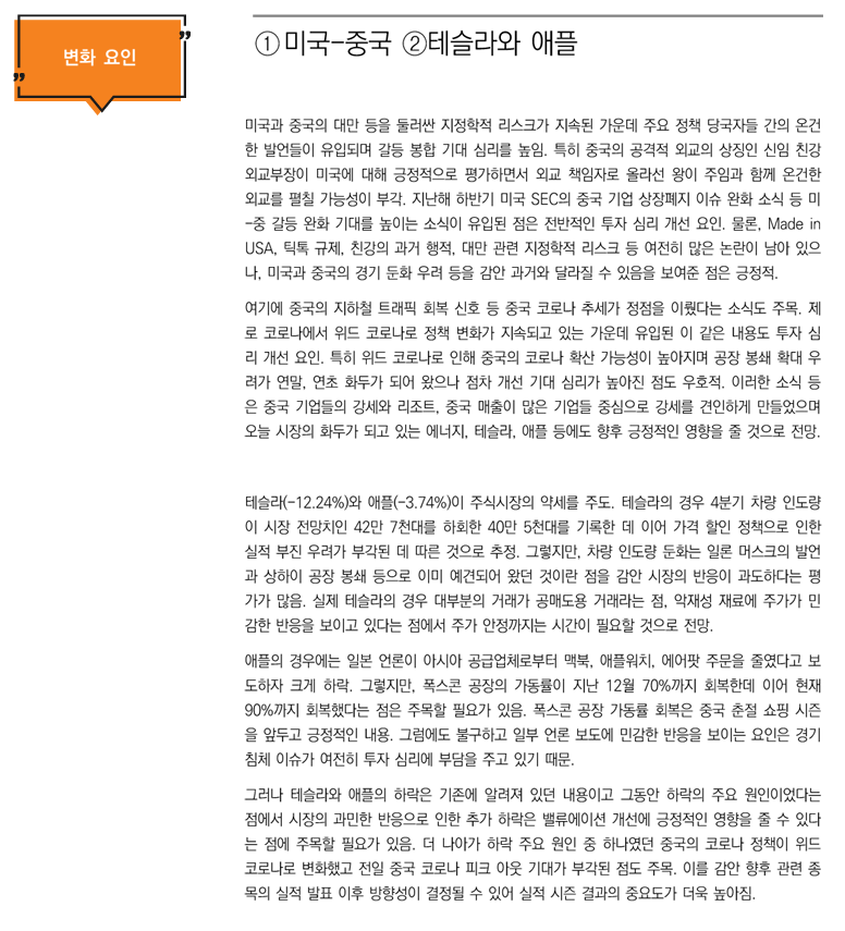 변화요인: ①미국-중국 ②테슬라와 애플