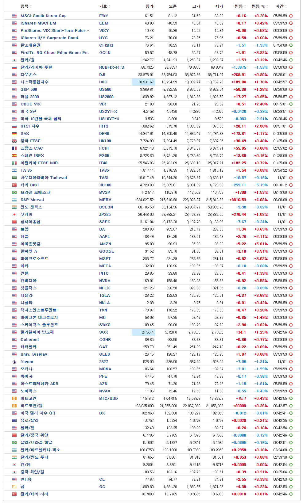 - U.S. Market Closing – 06:00 기준