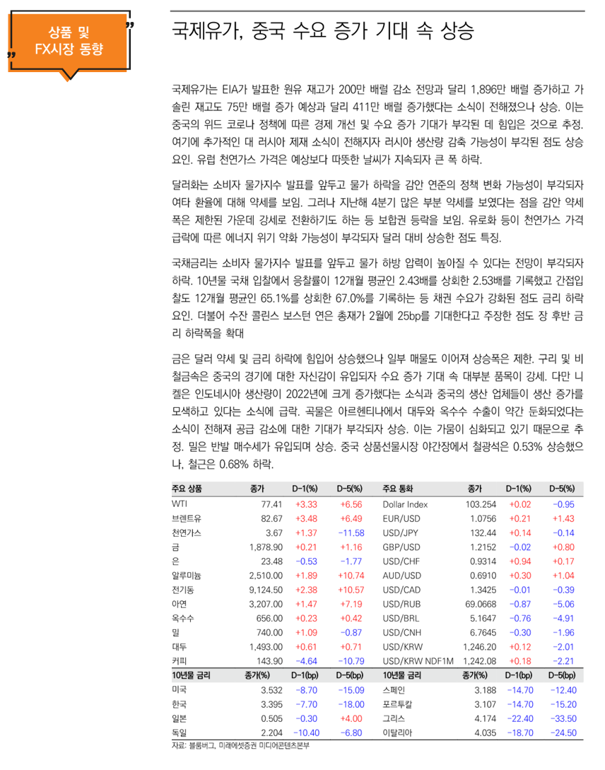 *동 자료는 2023년 1월 12일 미래에셋증권 홈페이지에 등재된 자료를 요약한 것입니다.