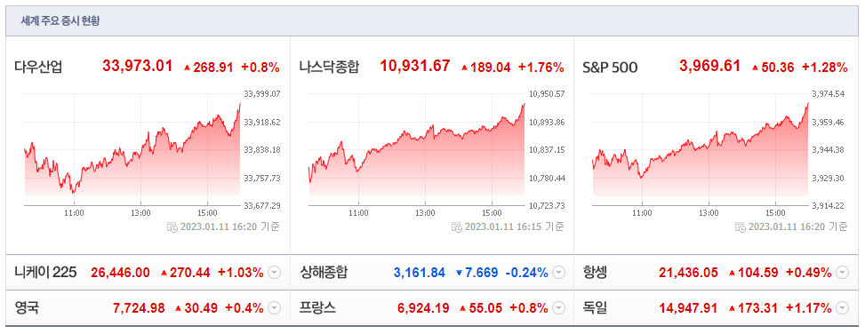 글로벌 주식시장 변화와 전망(1월 12일)