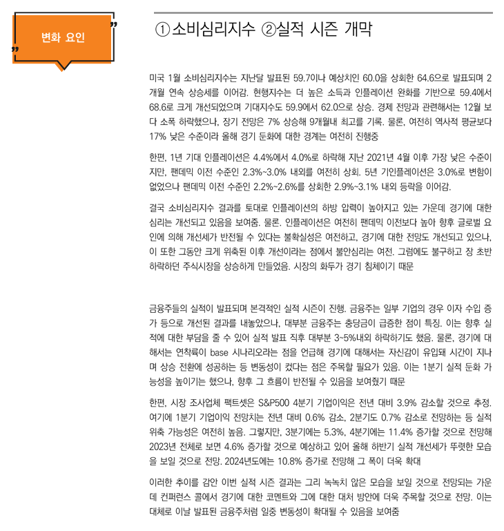변화요인: ①소비심리지수 ②실적 시즌 개막