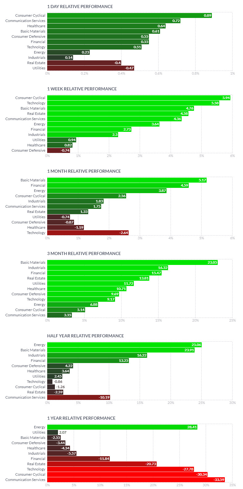 | IT | XLK | 130.5 | 0.3% | 안개 | 0.1% | 6.9% | -19.5% |
