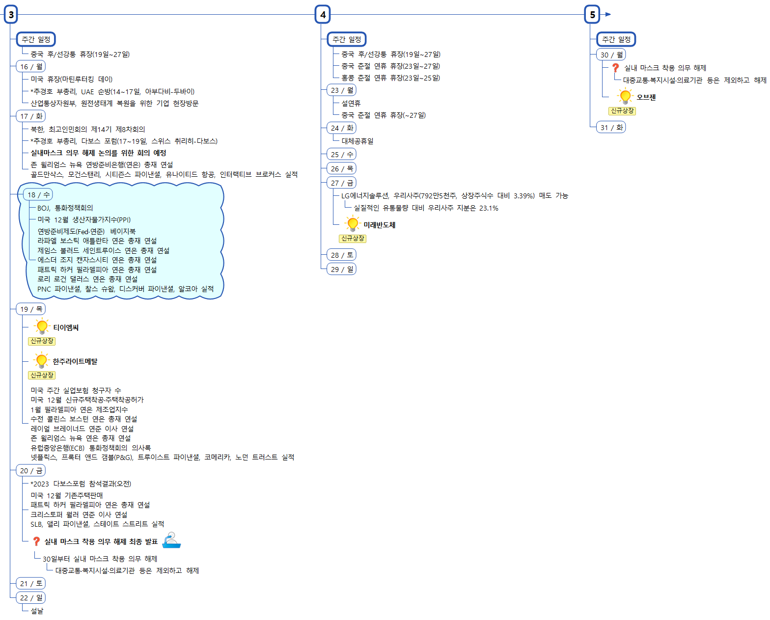 | 1월 16일(월) 증시캘린더 / 해외마감시황 (1) | 2023.01.16 |
