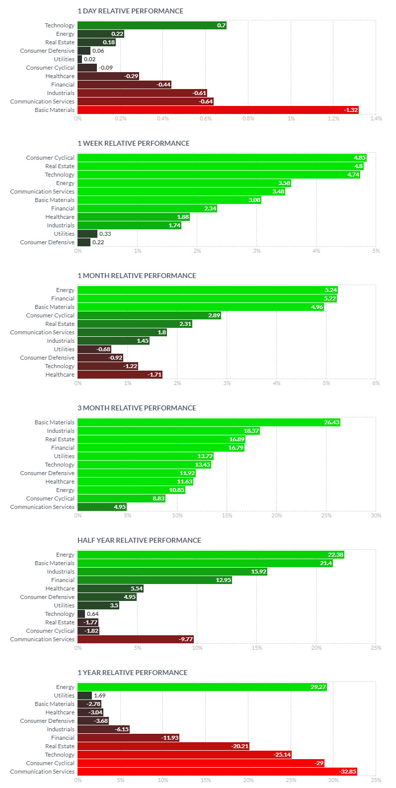 | 금융 | XLF | 35.86 | -0.72% | 햇빛 | 7.30% | 12.10% | -6.10% |
