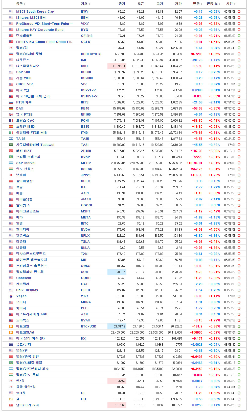 - MSCI 한국지수 ETF: $62.25 (-0.17, -0.27%)