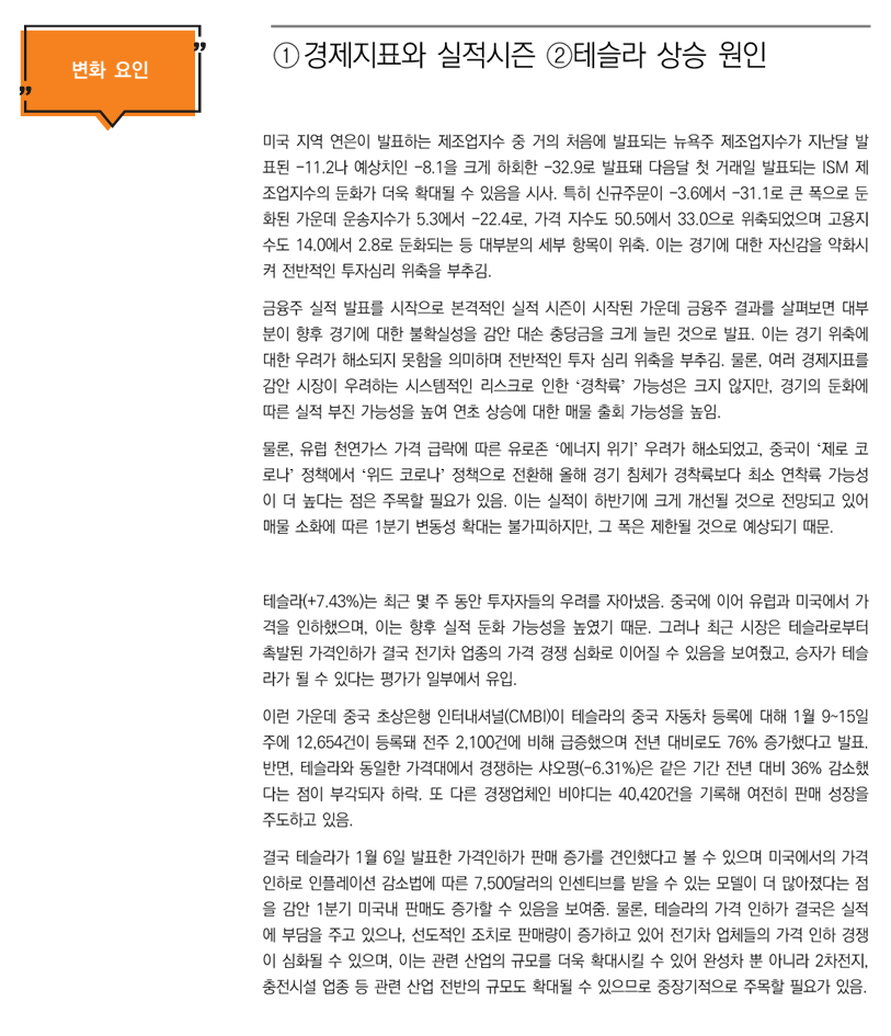 변화요인: ①경제지표와 실적시즌 ②테슬라 상승 원인