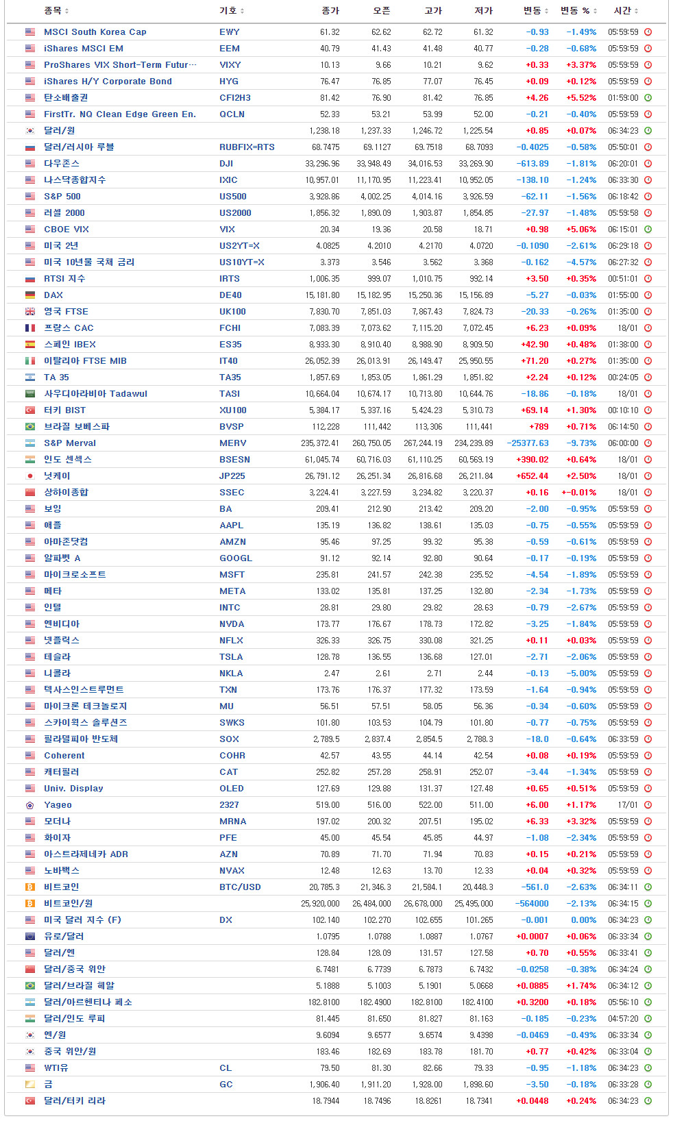 - MSCI 한국지수 ETF: $61.32 (-0.93, -1.49%)