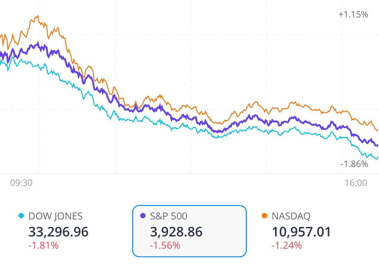 - S&P500: 3,928.86p (-62.11p, -1.56%)