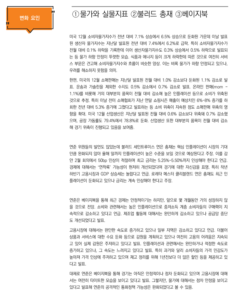변화요인: ①물가와 실물지표 ②불러드 총재 ③베이지북