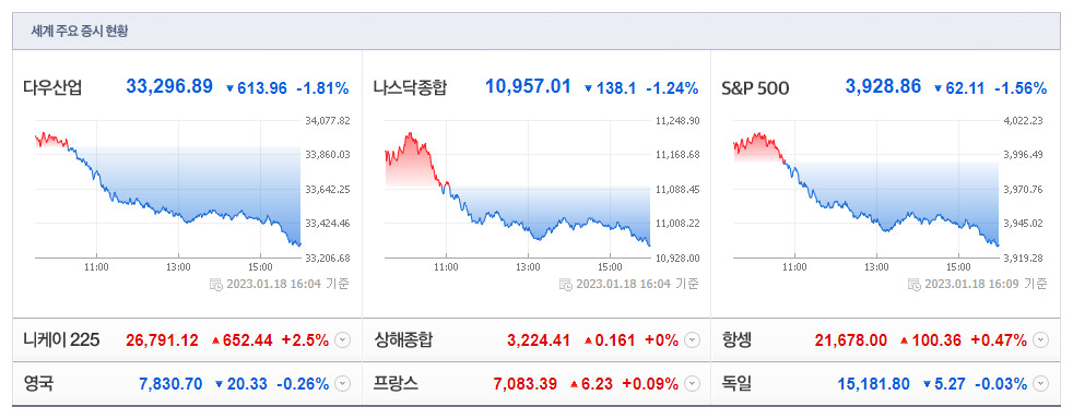 | 1월 18일(수) 증시캘린더 / 해외마감시황 (0) | 2023.01.18 |