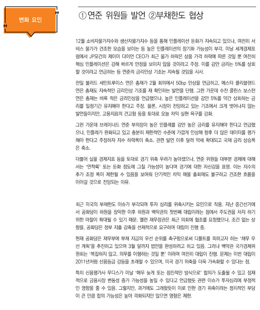 변화요인: ①연준 위원들 발언 ②부채한도 협상