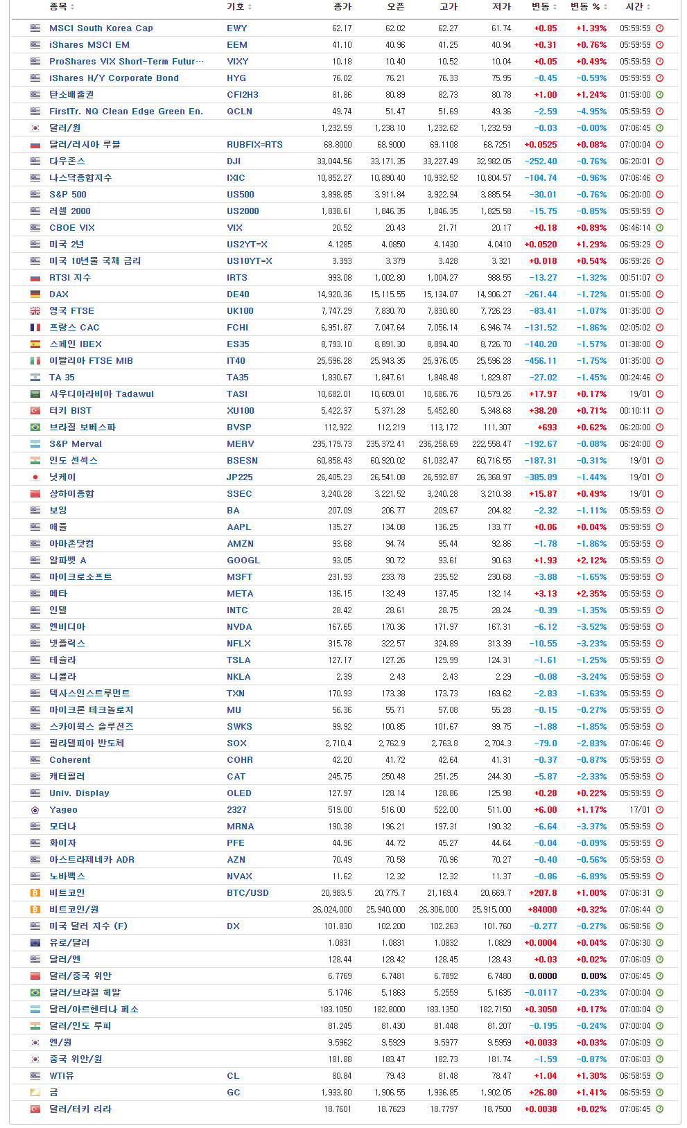 - MSCI 한국지수 ETF: $62.17 (+0.85, +1.39%)