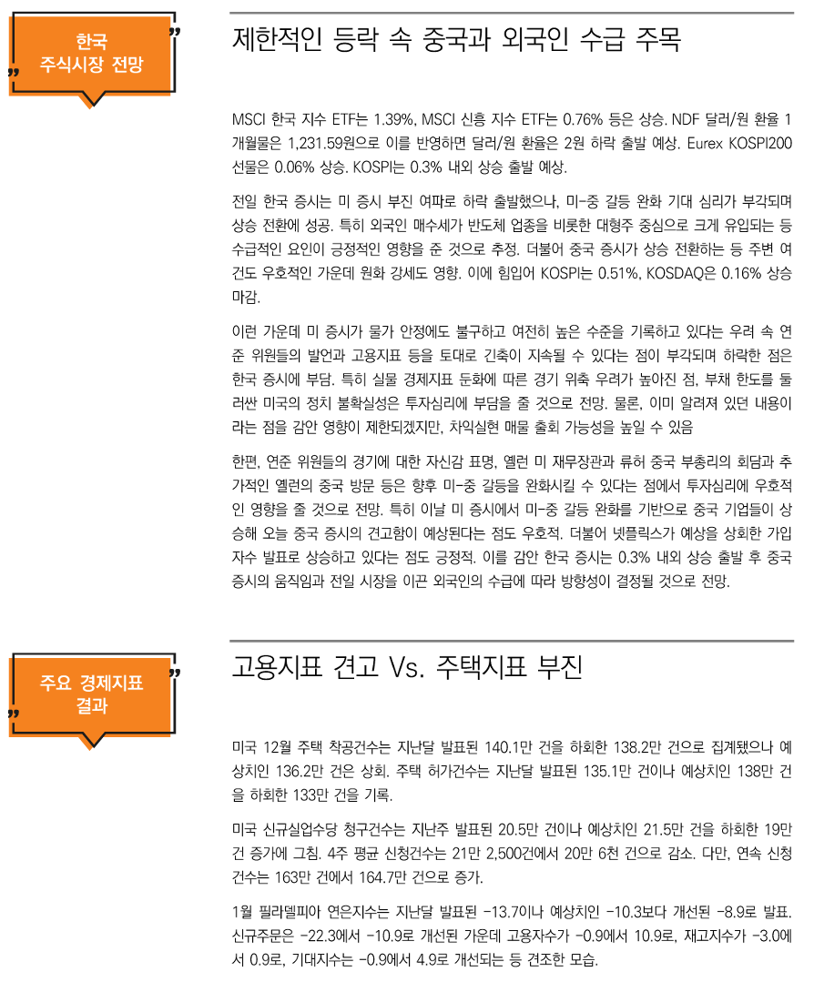 01/20 [미래에셋증권] 해외 금융시장
