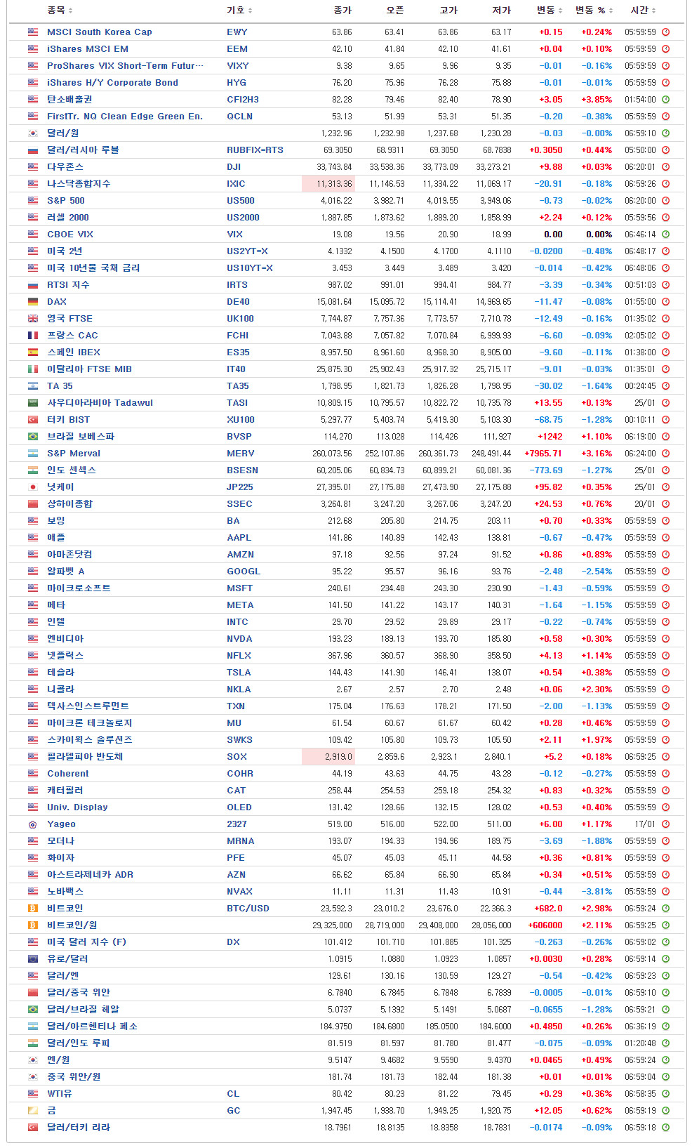 - 필라델피아 반도체: 2,918.99 (+5.25, +0.18%)