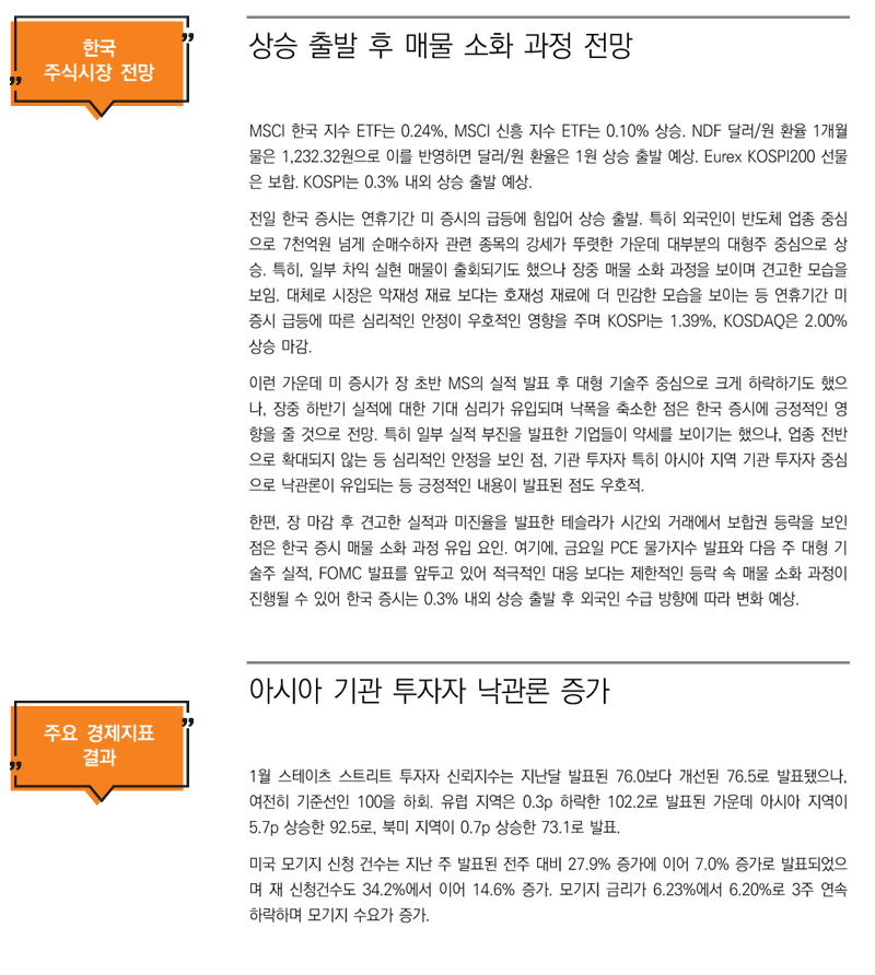 01/26 한국 증시: 상승 출발 후 매물 소화 과정 전망