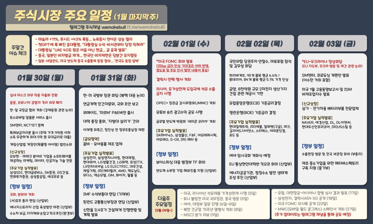| 2월 1일(수) 증시캘린더 / 해외마감시황 (0) | 2023.02.01 |