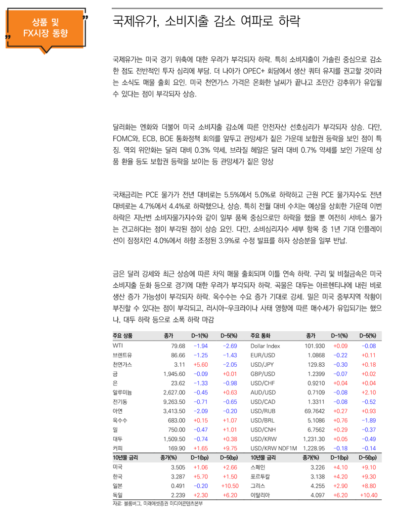 그렇지만, 여전히 소비지출이 감소하는 등 경기 위축 국면이 지속되고 있다는 점은 부담. 특히 이를 반영하며 대부분의 종목군이 약세를 보여 다우지수는 소폭 상승에 그쳤고, 장 마감 앞두고 나스닥도 차익 매물 출회되며 상승분을 일부 반납한 점은 부담. 이를 감안 한국 증시는 0.3% 내외 상승 출발할 것으로 예상되나 상승을 확대하기 보다는 제한적인 등락에 그칠 것으로 전망