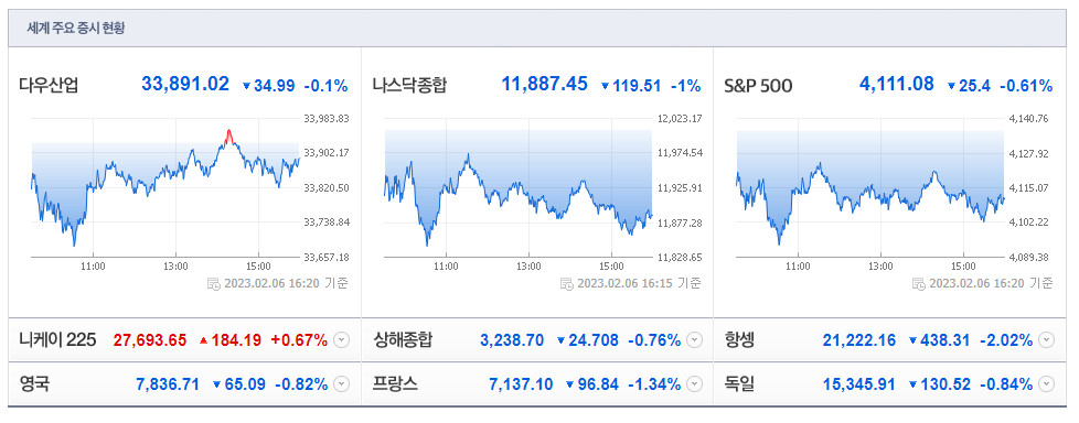 | 2월 6일(월) 증시캘린더 / 해외마감시황 (0) | 2023.02.06 |