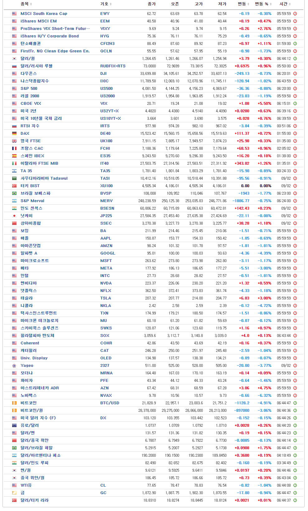 | 지수 | 종가 | 등락폭 | 등락률 | 상승/하락/보합 |