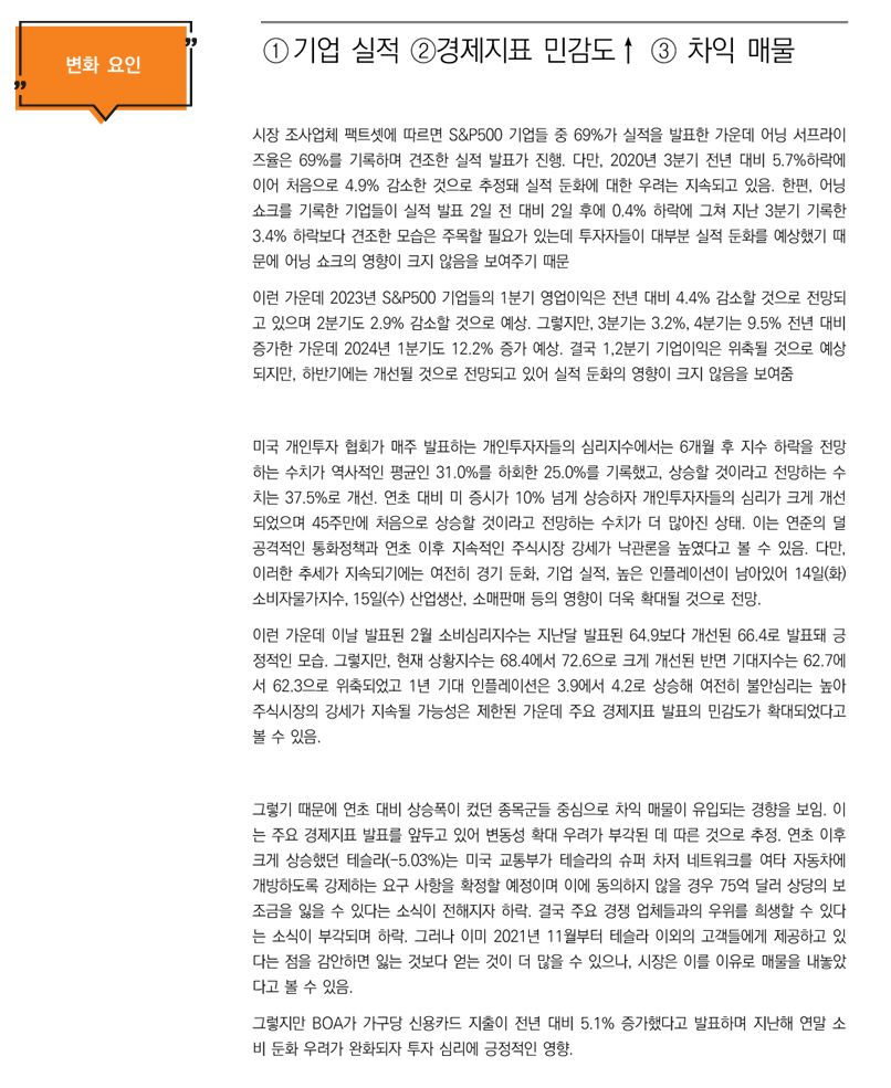 변화요인: ①기업 실적 ②경제지표 민감도↑ ③ 차익 매물