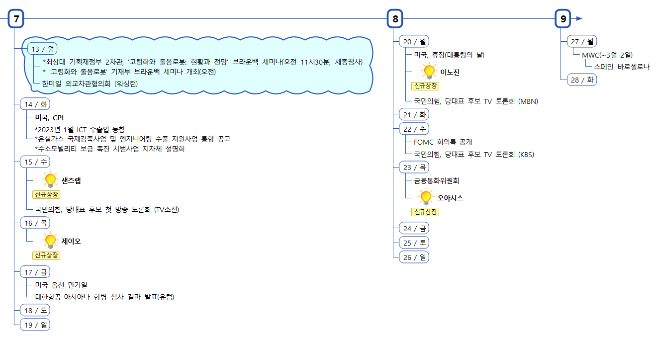 증시캘린더는 개인적으로 관련된 소식을 확인후 작성한 일정이라 변동 또는 오류의 소지가 있습니다.